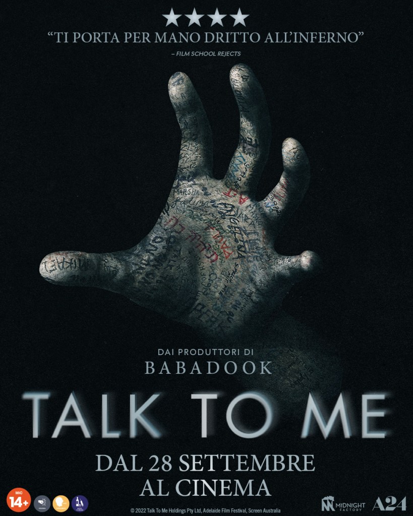 Preparatevi dunque a crogiolarvi nell’angoscia esistenziale, perché Talk To Me arriverà nelle sale italiane dal 28 settembre per Midnight Factory.