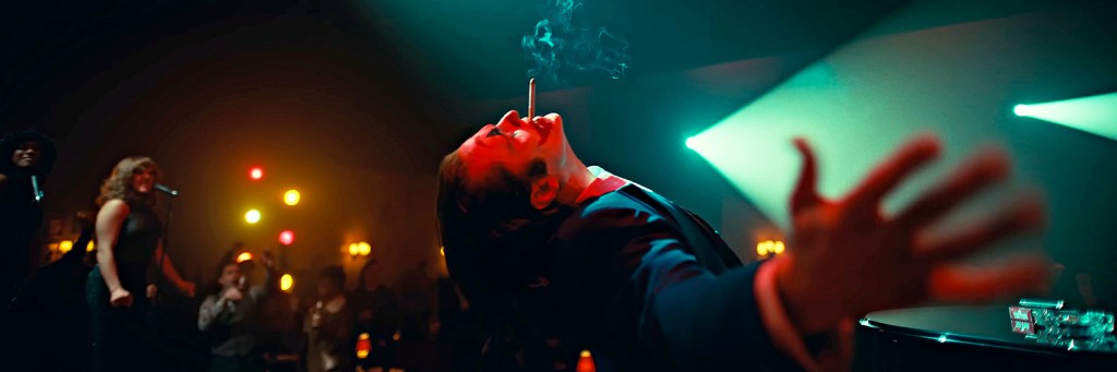Li vediamo svolazzare oniricamente, per lo più per citare le immagini familiari di altri musical, ad esempio il riferimento alla New Wave francese di Jaques Demy, The Umbrellas of Cherbourg, e il sincero ed espressionistico One from the Heart di Francis Ford Coppola. A parte ciò, l’espressionismo di Phillips si limita a far sì che ogni ambiente e fonte di luce assomiglino, in qualche modo, a un riflettore intenso puntato su un palco, delineando il profilo di Joker e Harley Quinn fino a quando non vengono definiti dalla loro forma – la loro iconografia. Sulla carta è un’ottima idea che attinge all’aspetto prestazionale associato al personaggio di Joker, ma raramente si evolve, visivamente o concettualmente.